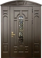 Стальная дверь арочного типа МДФ со вставками, стеклопакетом и решеткой