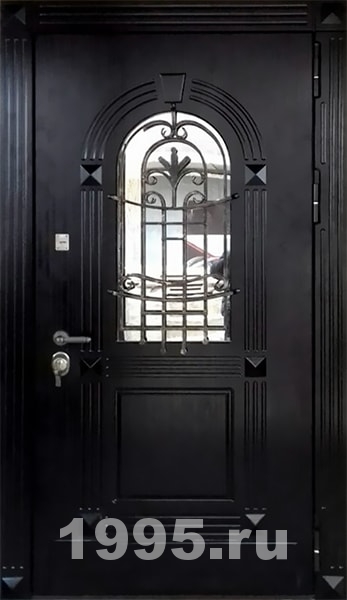 Дверь с ковкой, стеклопакетом и декоративными элементами