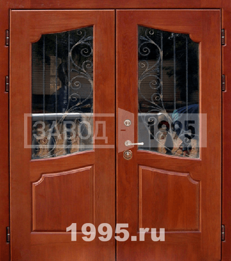 Двустворчатая дверь с МДФ и стеклом с ковкой №138