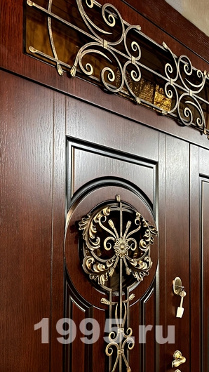 Дверь с ковкой, стеклопакетом и декоративными элементами