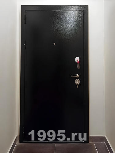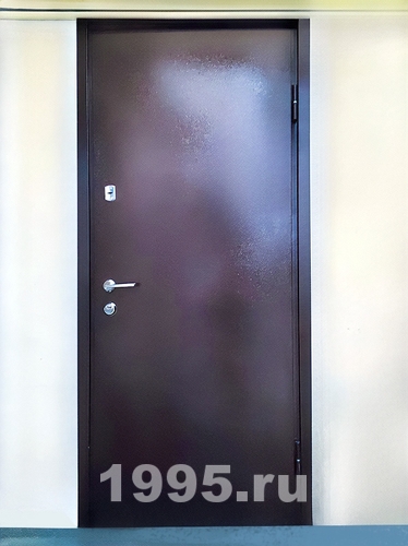 Дверь изготовлена из стали толщиной 2 мм, с двух сторон покрашена порошковым напылением зеленого цвета, устойчивым к механическим воздействиям. В комплектацию входят петли диаметром 20 мм, два врезных замка и ручка-скоба. Дополнительно конструкция оборудована доводчиком. Модель подойдет для установки в качестве тамбурной двери в многоквартирном доме.